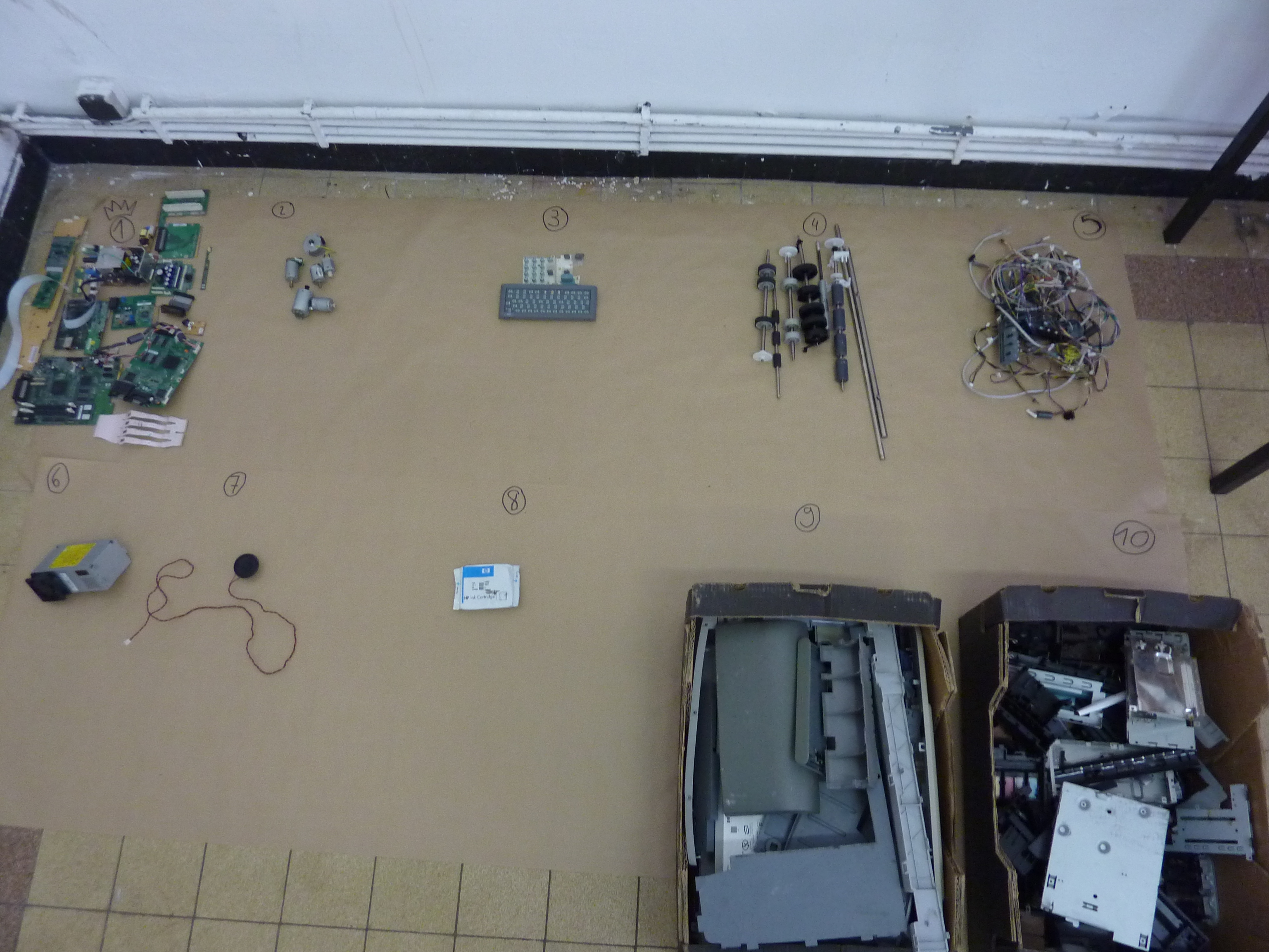Pamina is one of the programmers for Bâtard 2013, a festival for emerging artists in Brussels. She said, she’s not payed for this job and we both expressed our concerns regarding the self-exploitative structures of the art scene. Especially when jobs (or invitations) are praised as opportunities for a future career one is willing to accept bad conditions. But since we didn’t meet to complain nor to rethink the system ** we turned to the copying machine. What to do with this dismantled apparatus? We studied the guidelines Nicolas gave. Not really a clue…