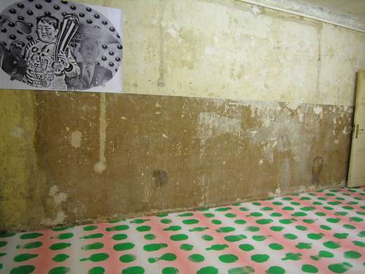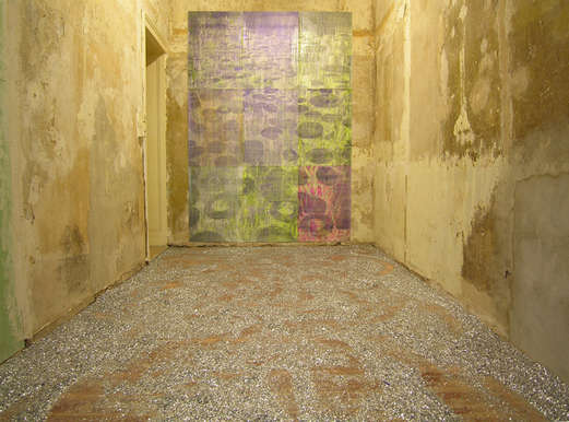 Die erste Einzelausstellung installierte die Künstlerin Vreni Spieser (2). Ein bunter Glitterweg führte quer durch das ehemalige Ladenlokal, an einer Projektion vorbei, ein Loop tanzender Beine und Somewhere Over the Rainbow angespielt. (Video: Pierre Giner)
